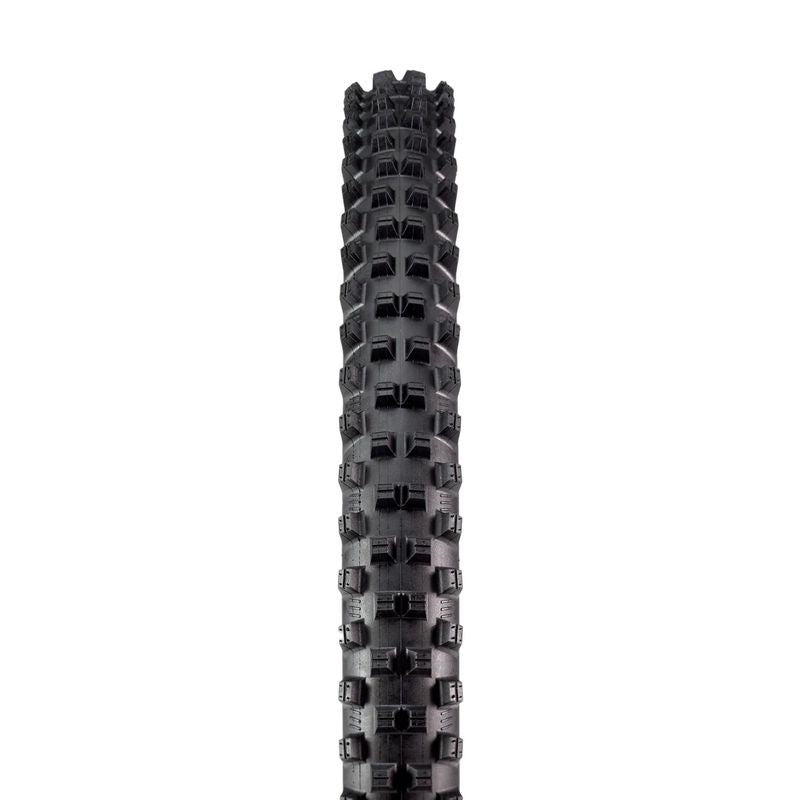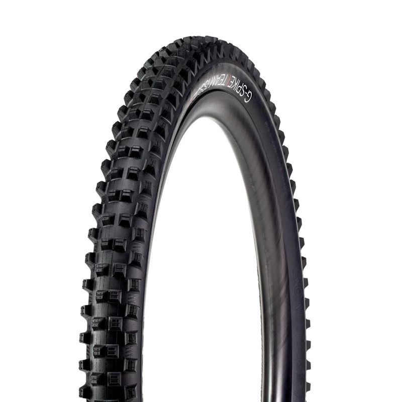 Aggressive tread, elite traction. The G-Spike Team Issue is a downhill mountain bike tire designed for extreme conditions, delivering reliable traction even in the wettest and muddiest conditions. Developed to meet the stringent demands of Trek Factory Racing Downhill riders, this tire features aggressive tread spikes that can be trimmed to optimize performance based on the day's riding conditions.