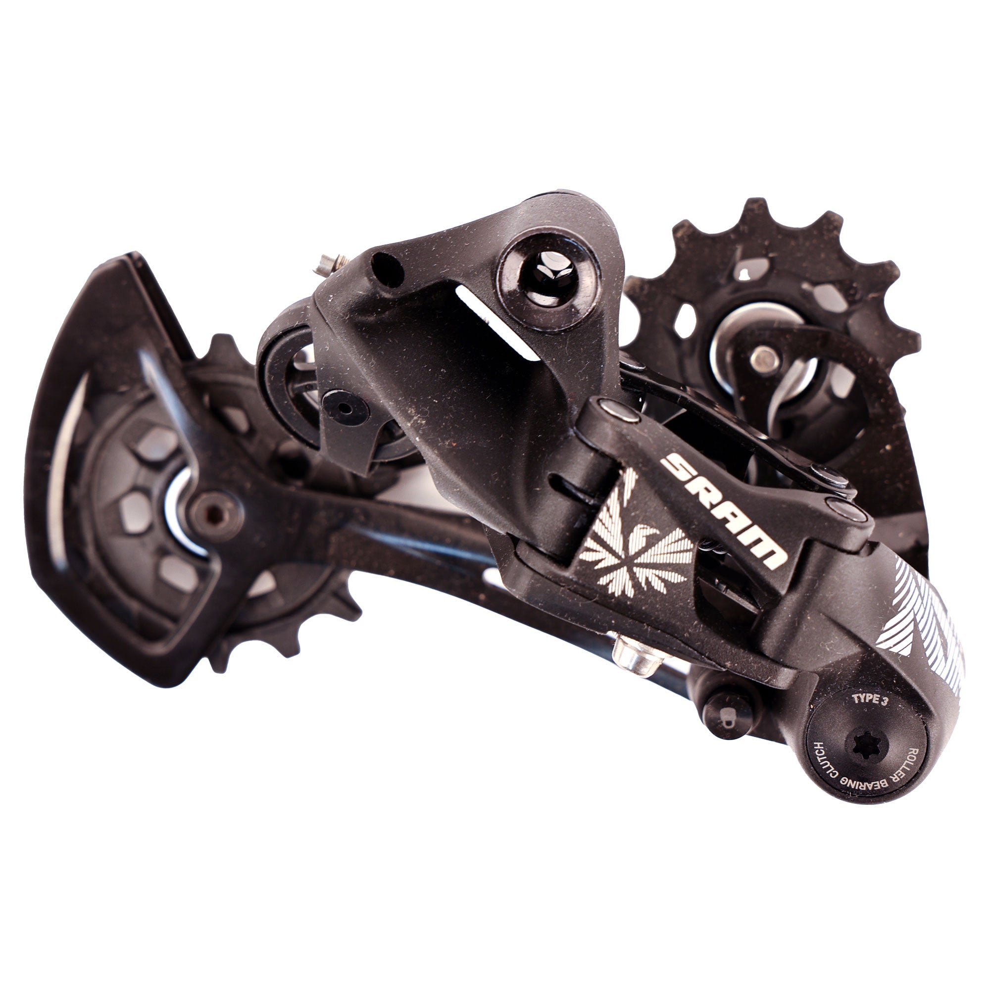 The NX Eagle rear derailleur features the proven SRAM 1x-specific X-HORIZON design. The larger, 14-tooth X-SYNC lower pulley easily facilitates 11- to 50- and 10- to 50-tooth cassette capacity, and also adds to NX Eagle's overall smooth-pedaling feel. The Type-3 ROLLER BEARING CLUTCH provides quiet, consistent performance and durability.