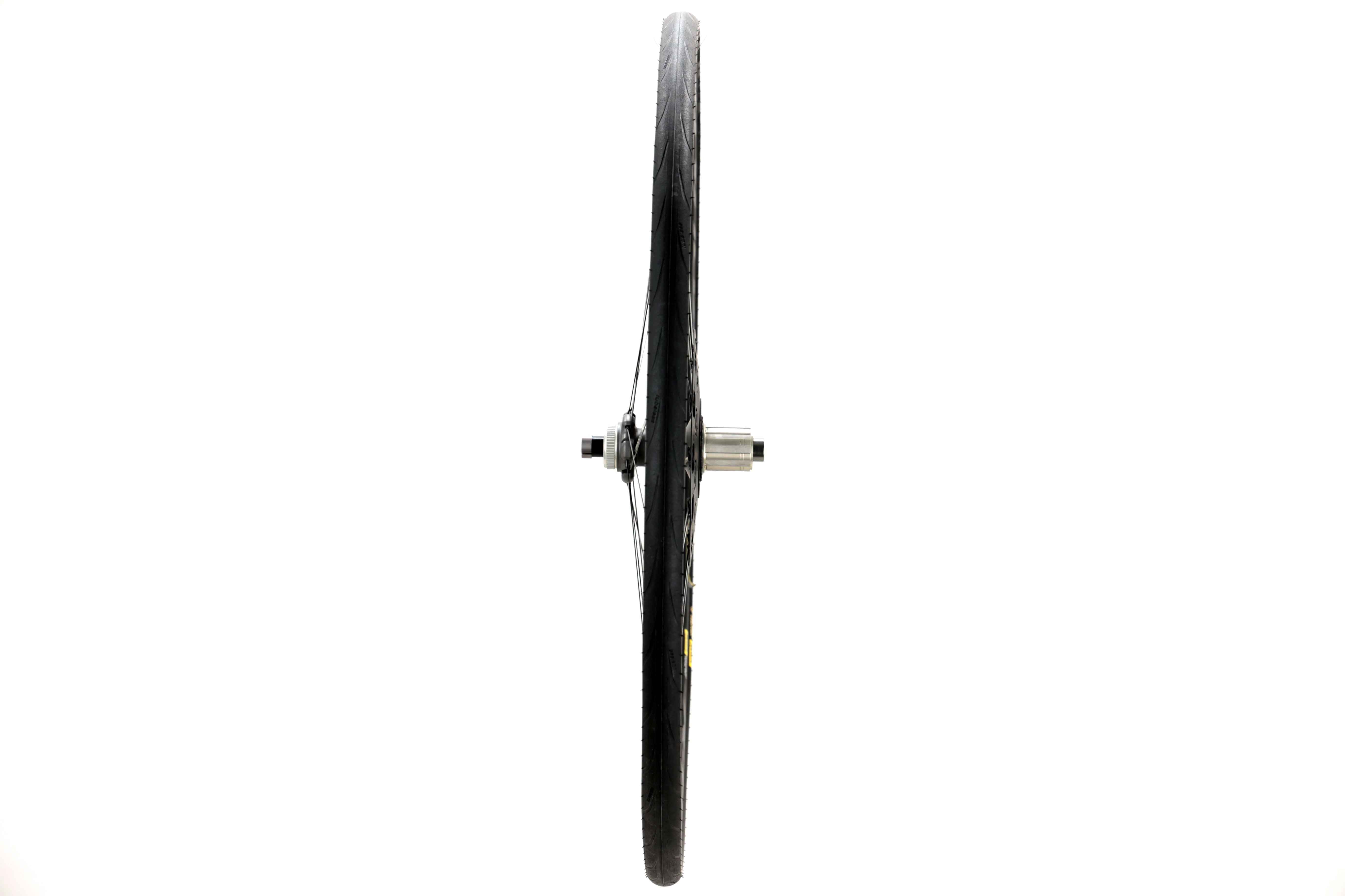 Riding Impressions: The Mavic Ksyrium Elite rear wheel delivers an impressively smooth and efficient riding experience, thanks to its lightweight construction and aerodynamic features. The tubeless setup with the 28c Yksion Pro UST tire significantly improves ride quality by allowing for lower tire pressures, which results in better traction and comfort, particularly on rougher roads or during long endurance rides. The wheel's stiffness is notable, providing excellent power transfer during sprints or climbs without compromising on comfort. Overall, the Ksyrium Elite is a versatile and high-performing rear wheel that meets the demands of competitive racers and endurance cyclists alike, offering reliability, speed, and an enjoyable ride.