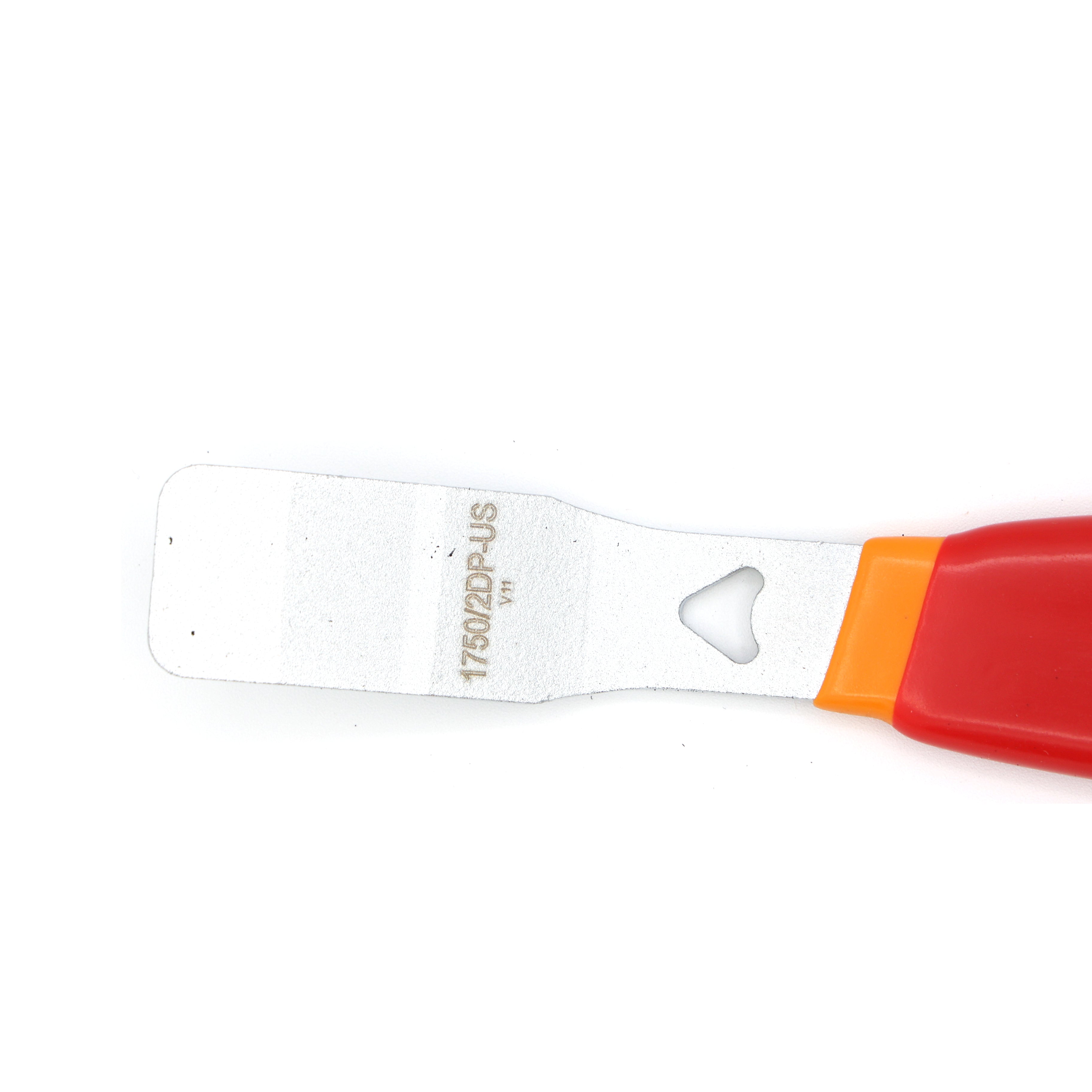 This spreader is specifically shaped to slide between pads and fully retract pistons evenly and safely.
